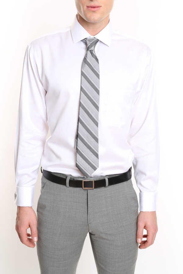 Made with wrinkle resistant cotton twill, this French-cuffed luxury dress shirt is perfect for Business Class frequent flyers.