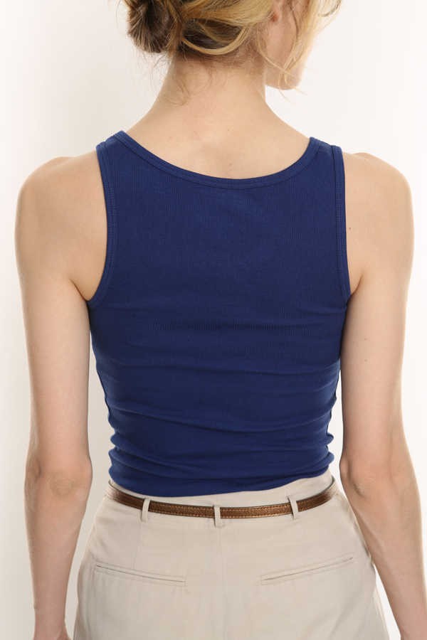 Ribbed scoop neck tank. 100% cotton.Machine wash.