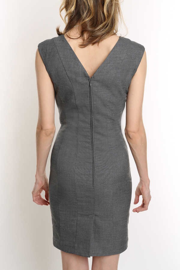 Sleeveless, jewel neckline with deep Vee in back. Fitted through waist and hip. 100% polyester lining. Cotton/wool. Dry clean. - Additional Information